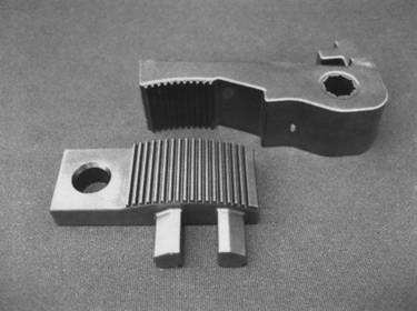 精石新材料長期的技術(shù)攻關(guān)和儲備,現(xiàn)已可以通過客戶提供的鋼件、鑄件制品的使用工況、受力情況將相當(dāng)部分零件轉(zhuǎn)換為粉末冶金制品,從而達(dá)到為客戶降低采購成本、生產(chǎn)成本的目的。我們現(xiàn)已成功的將德國瑪雅經(jīng)編機(jī)傳感鏈塊、電動執(zhí)行機(jī)雙聯(lián)齒、大圓機(jī)三角等鋼件或鑄件制品轉(zhuǎn)換為粉末冶金制品,為客戶節(jié)約了15%-80%不等的采購成本,并得到客戶的廣泛認(rèn)可。